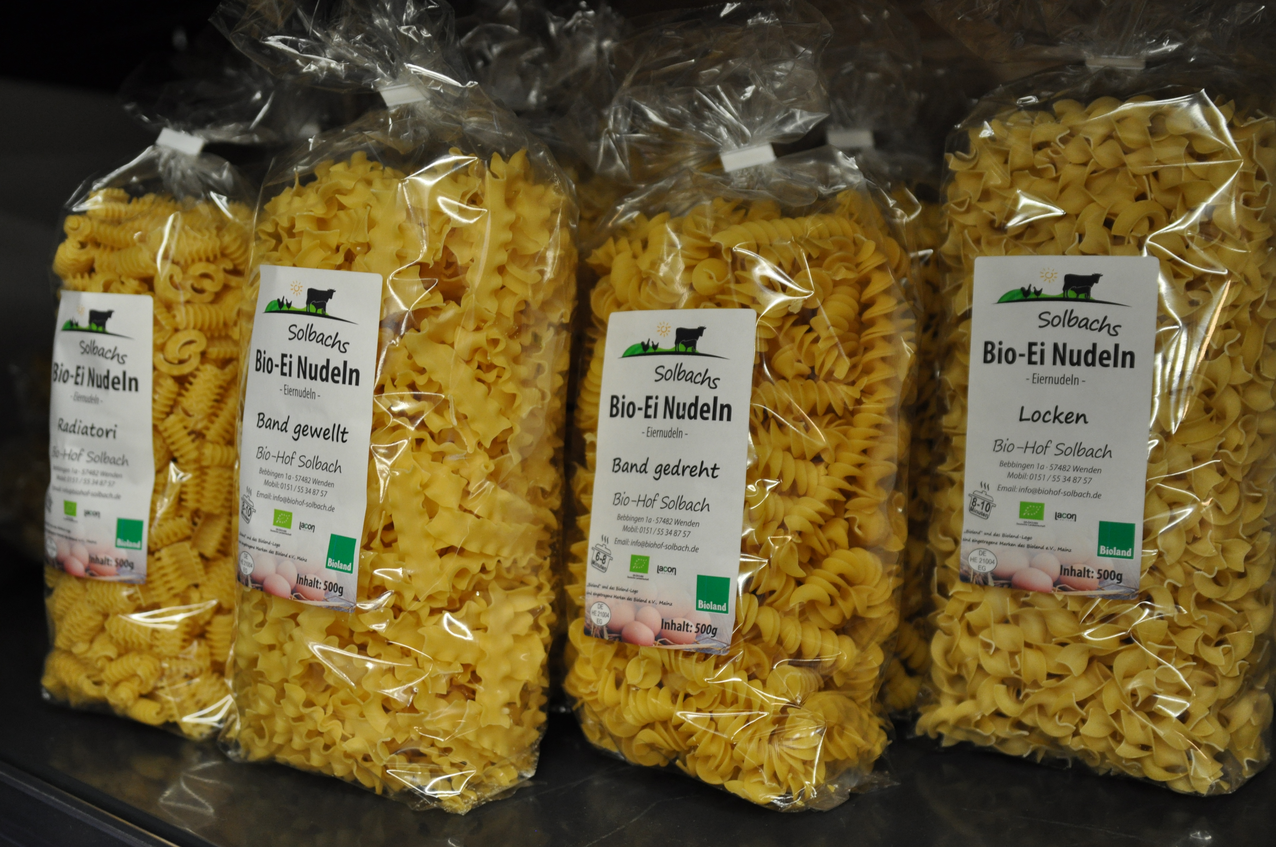 Fleisch- und Wurstwaren der Fleischerei Alterauge – Brot und Brötchen der Bäckerei Junge –Obst und Gemüse Alfons Wurm –Bioprodukte vom Biohof Solbach –Mehl und Brotbackmischungen der Horbacher Mühle – Heimischer Honig „Annas Blütengold“– Käse aus der Atta Käserei –Kaffeebohnen von Berghang Kaffee aus Olpe – Milch und Milchprodukte der Marke „Volle Kanne“ aus Drolshagen – Bio-Olivenöl „Quinta Do Folgado” direkt aus Portugal – Eier und Eierprodukte vom Geflügelhof Kaufmann aus Gelslingen bei Drolshagen – Gebäck aus der Manufaktur Ajeti in Krombach – Wein der Winzerfamilie Riske aus Dernau – Wein der Winzerfamilie Görgen von der Mosel – Wein der Winzerfamilie Michel aus Bingen – Hausgemachtes aus Obst und Gemüse „von Heike“ – Spirituosen von Kempers aus Olpe – Frischer Fisch der Forellenzucht Rameil aus Lennestadt-Albaum – Kräuterbitter aus der Bullenschluck-Manufaktur in Sulingen – Glückwunsch- und Trauerkarten aus den AWO-Werkstätten Deutz – Kreativkarten von Karin Klein aus Wenden